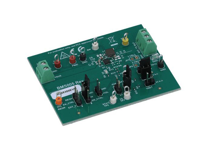 BQ25300EVM, 17V giriş voltajı ve 3A şarj akımı kapasitesine sahip, 1 hücreli pil şarj uygulamaları için tasarlanmış yüksek performanslı bir değerlendirme modülüdür.