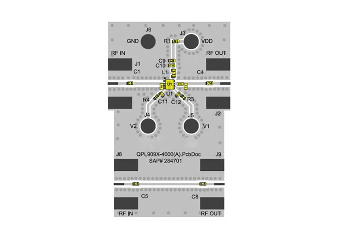The QPL9097EVBP01 is an advanced evaluation board featuring an ultra-low noise bypass gain block amplifier, designed for embedded solutions requiring high-performance signal conditioning and amplification.