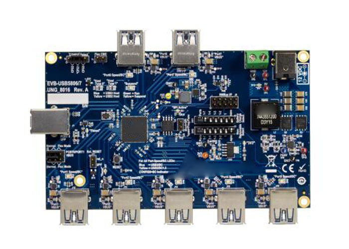 EVB-USB5807, yerleşik çözümler için tasarlanmış 7 portlu bir USB3.2 SmartHub değerlendirme tahtasıdır ve USB merkezi uygulamaları için kapsamlı test ve geliştirme yetenekleri sunar.